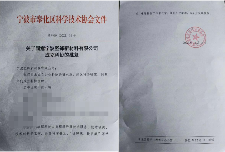 自去年開(kāi)始,堅(jiān)鋒®先后與區(qū)、市科技協(xié)會(huì)相關(guān)部門(mén)進(jìn)行溝通與對(duì)接,遞交數(shù)份材料,并按照市科協(xié)要求的規(guī)范流程,做好科協(xié)成立的各項(xiàng)準(zhǔn)備工作。