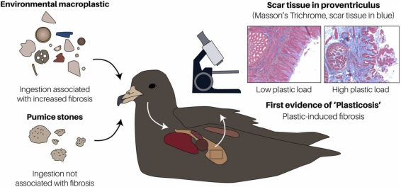 近日,英國和澳大利亞研究人員首次在海鳥身上發(fā)現(xiàn)一種完全由塑料引發(fā)的新病。研究人員認為,鑒于自然界普遍存在塑料污染,他們的發(fā)現(xiàn)可能只是冰山一角,其他鳥類也有可能受此影響。這是研究人員首次在野生動物身上發(fā)現(xiàn)塑料誘發(fā)的纖維化疾病。他們把這種纖維化疾病稱為塑料病,以明確它是由環(huán)境中的塑料引發(fā)。